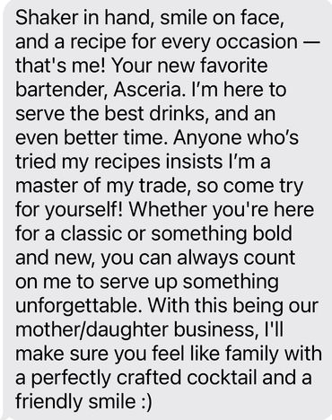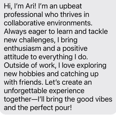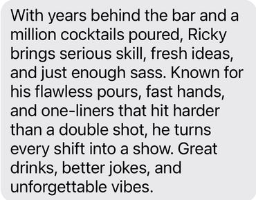 Our bartending service features expert mixologists who craft unique cocktails tailored to your event. Whether it's a wedding, corporate gathering, or private party, we ensure every drink is a masterpiece.